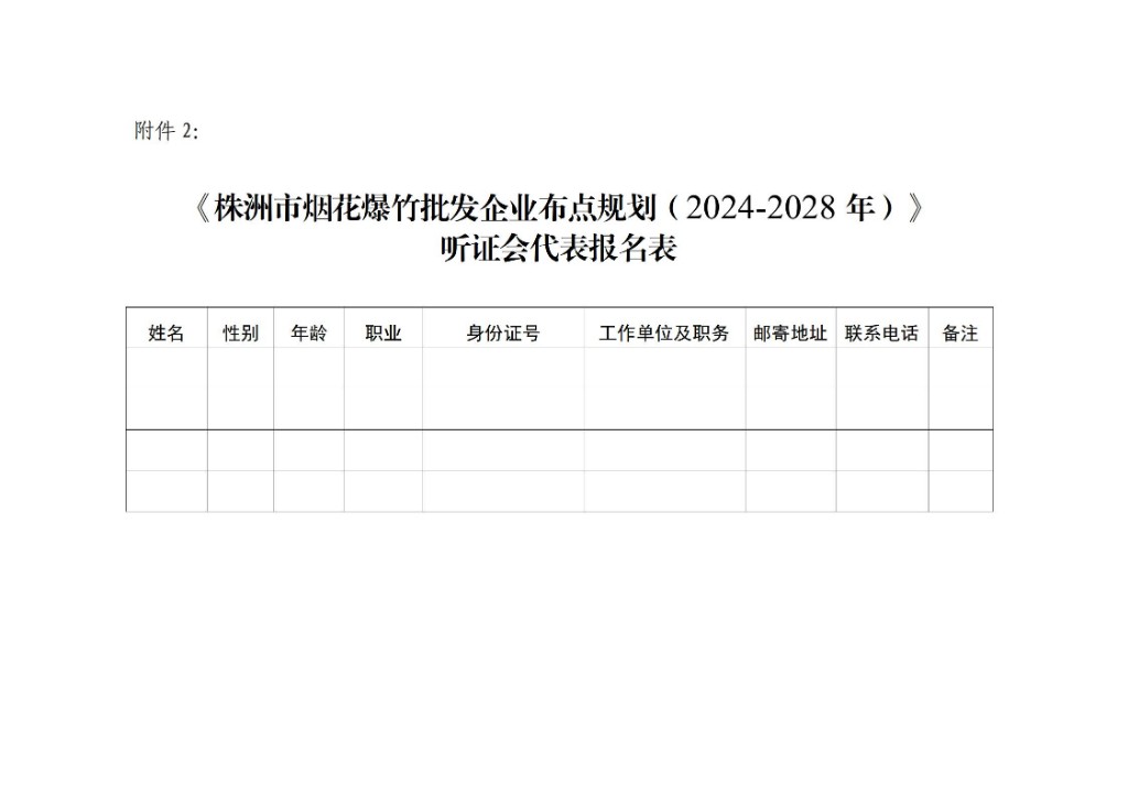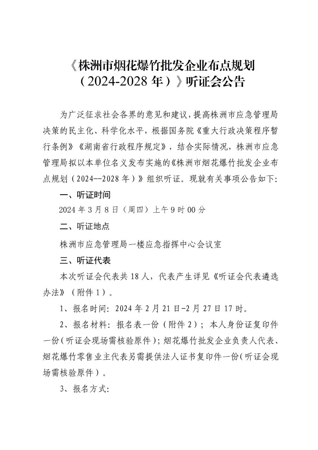 《株洲市烟花爆竹批发企业布点规划(2024-2028年)》听证会公告