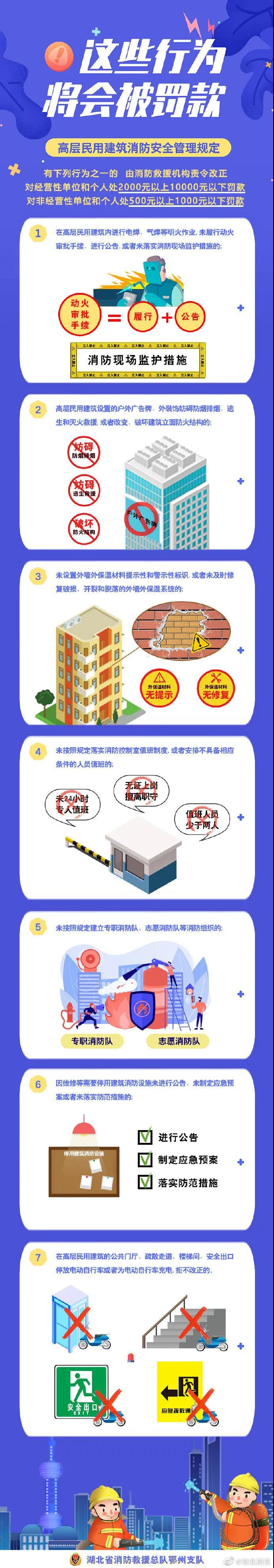 高层民用建筑消防安全管理规定你了解吗?以下这些行为将会被罚款,戳图一起来学习吧!