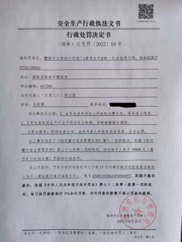 醴陵市北泰出口花炮厂(普通合伙)生产作业不符合有关国家标准案