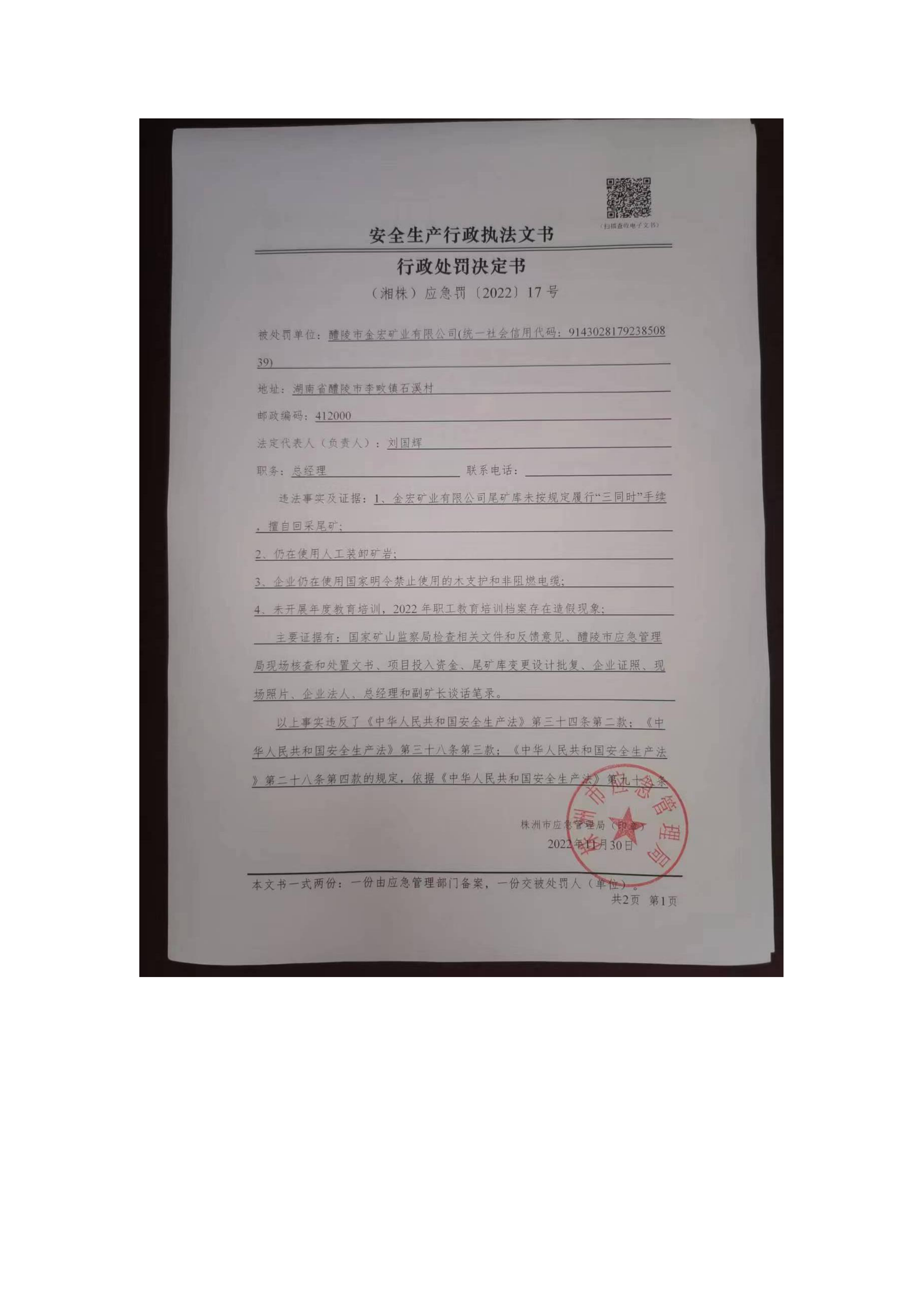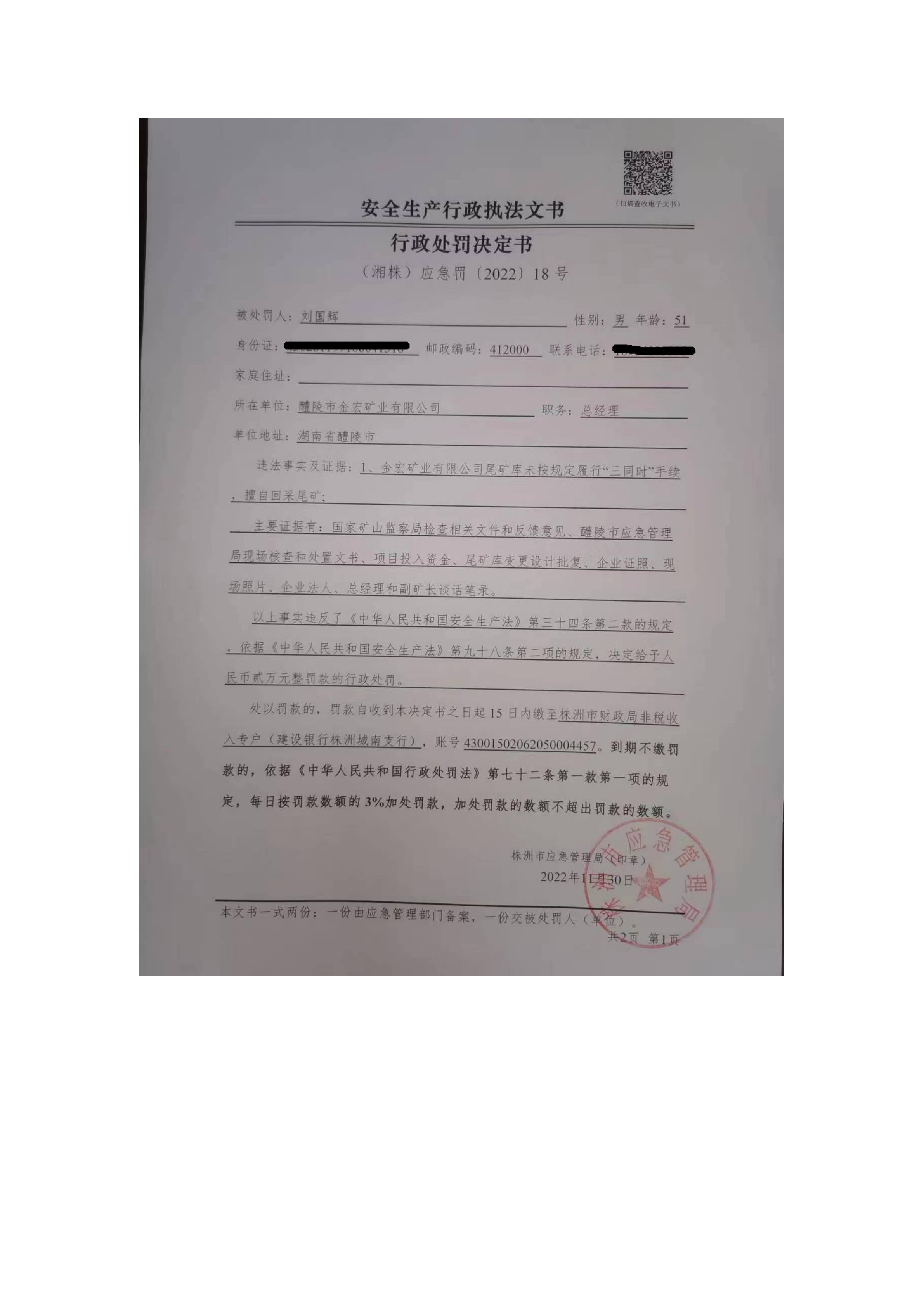醴陵市金宏矿业有限公司矿山建设项目未按照规定报经有关部门审查同意及安全设备不符合国家标准和未如实记录安全生产教育培训情况案
