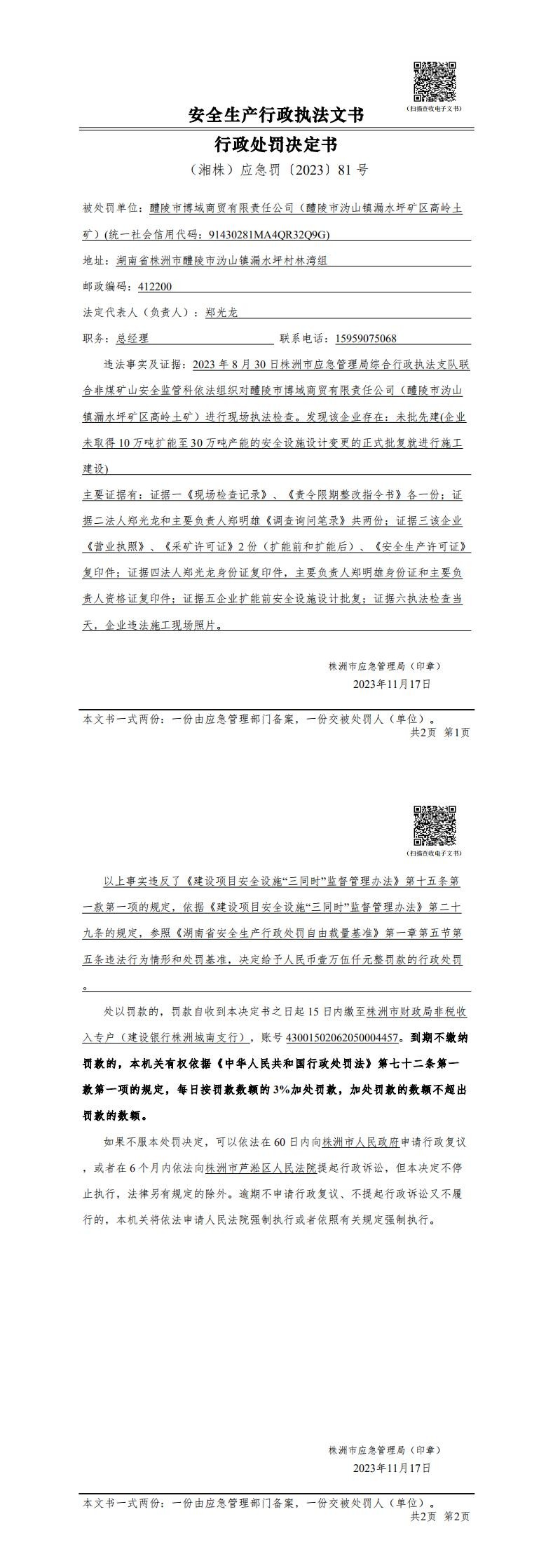 醴陵市博域商贸有限责任公司行政处罚决定书