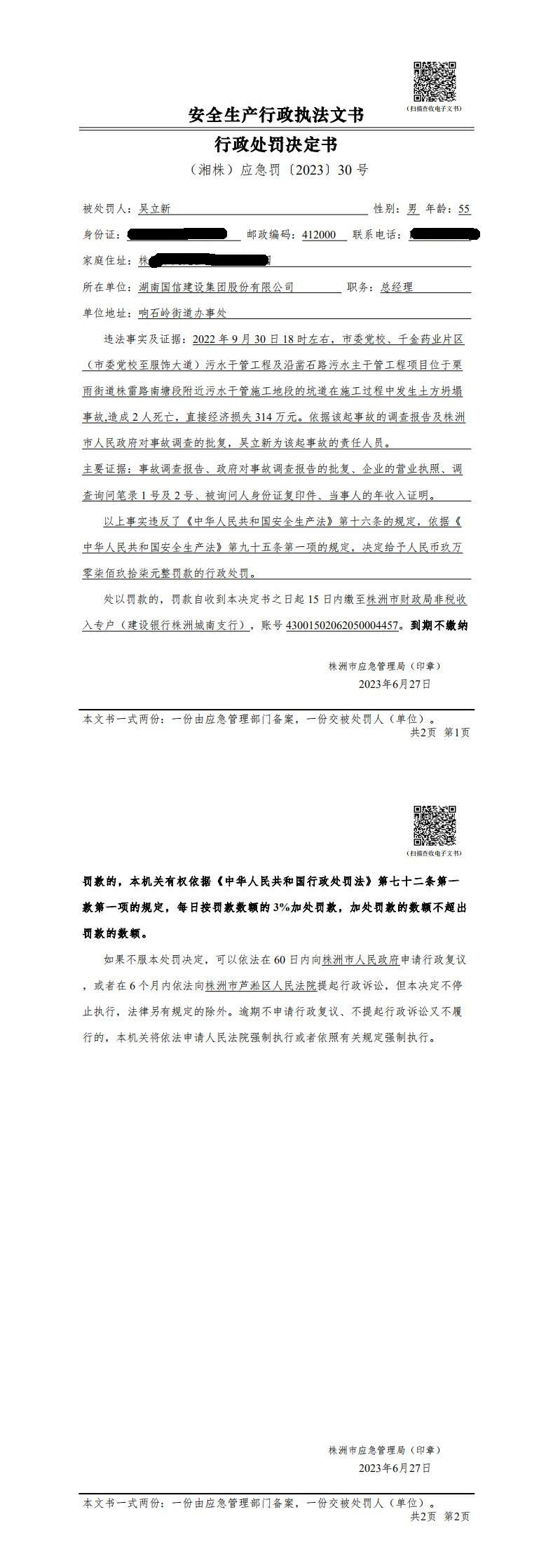 湖南国信建设集团股份有限公司行政处罚决定书(对个人)