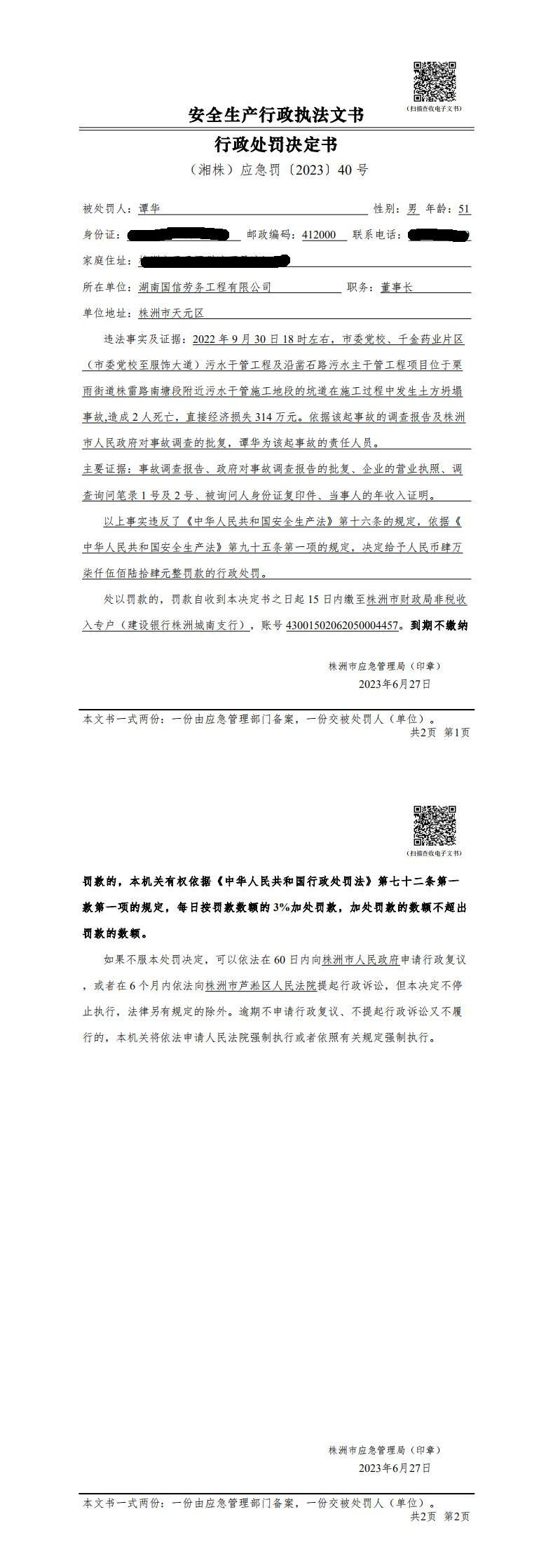 湖南国信劳务工程有限公司行政处罚决定书(对个人)