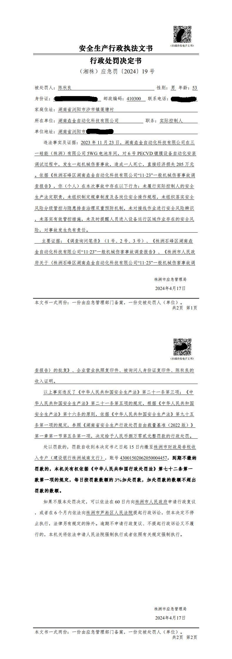湖南垚金自动化科技有限公司(实际控制人)行政处罚决定书