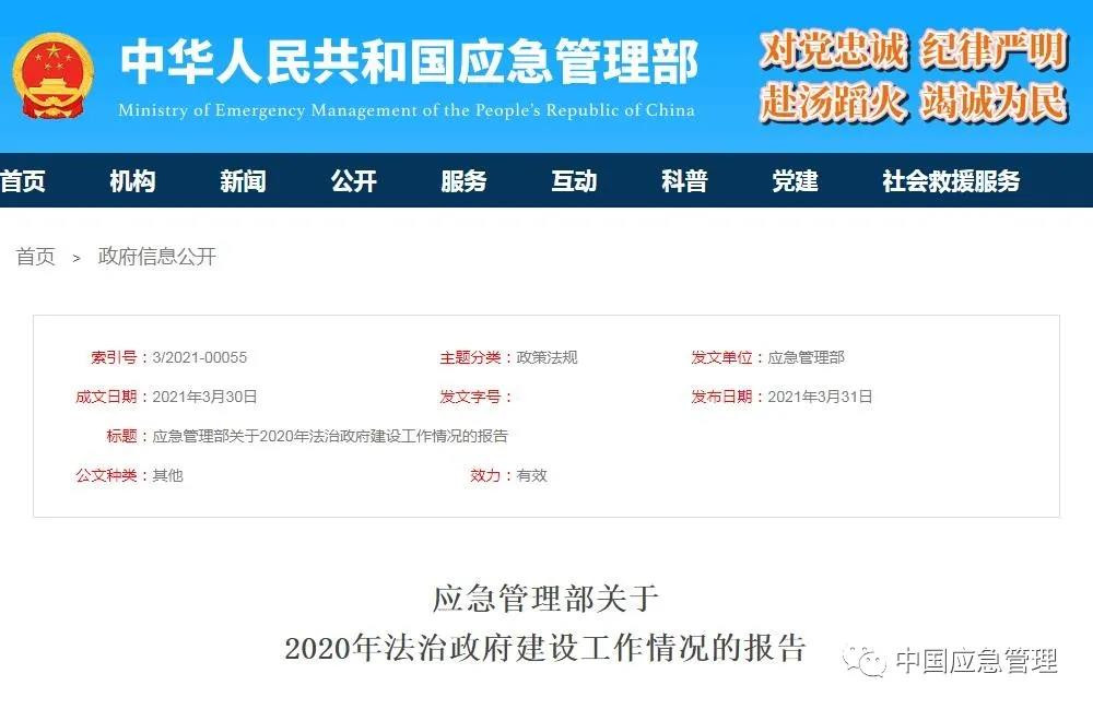 应急管理部发布法治政府建设工作报告