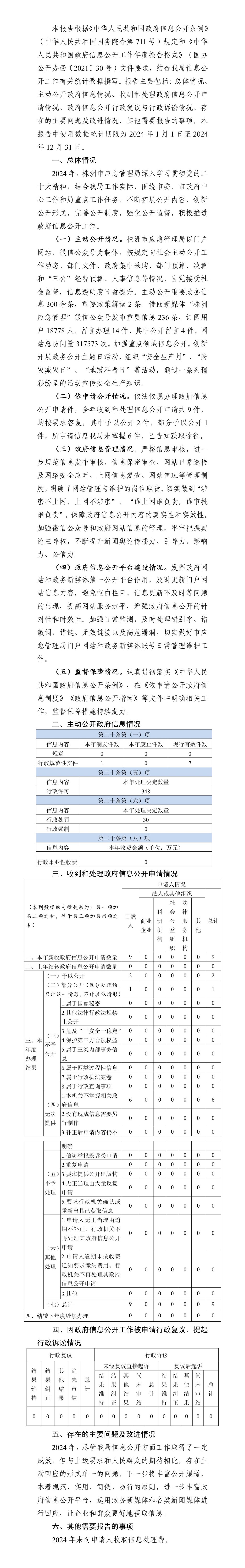 株洲市应急管理局2024年政府信息公开工作年度报告